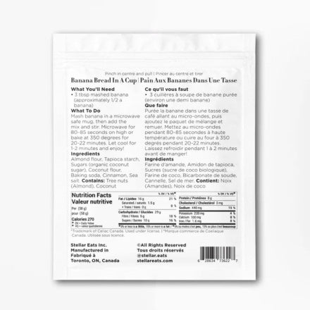 Warm, freshly baked, gluten-free banana bread in 2 minutes…that sounds bananas! But what could make it even better? Oh, how about being made with just 7 simple ingredients like almond flour, coconut flour, and cinnamon and packed with 8g of plant-based protein and 5g of fibre! That’s Stellar Eats’ banana bread in a cup! All you need is a mashed banana, and you’ve got an almond flour banana bread that’s gluten-free, grain-free, vegan, and paleo-friendly! Just one bite, and you’re sure to go bananas!