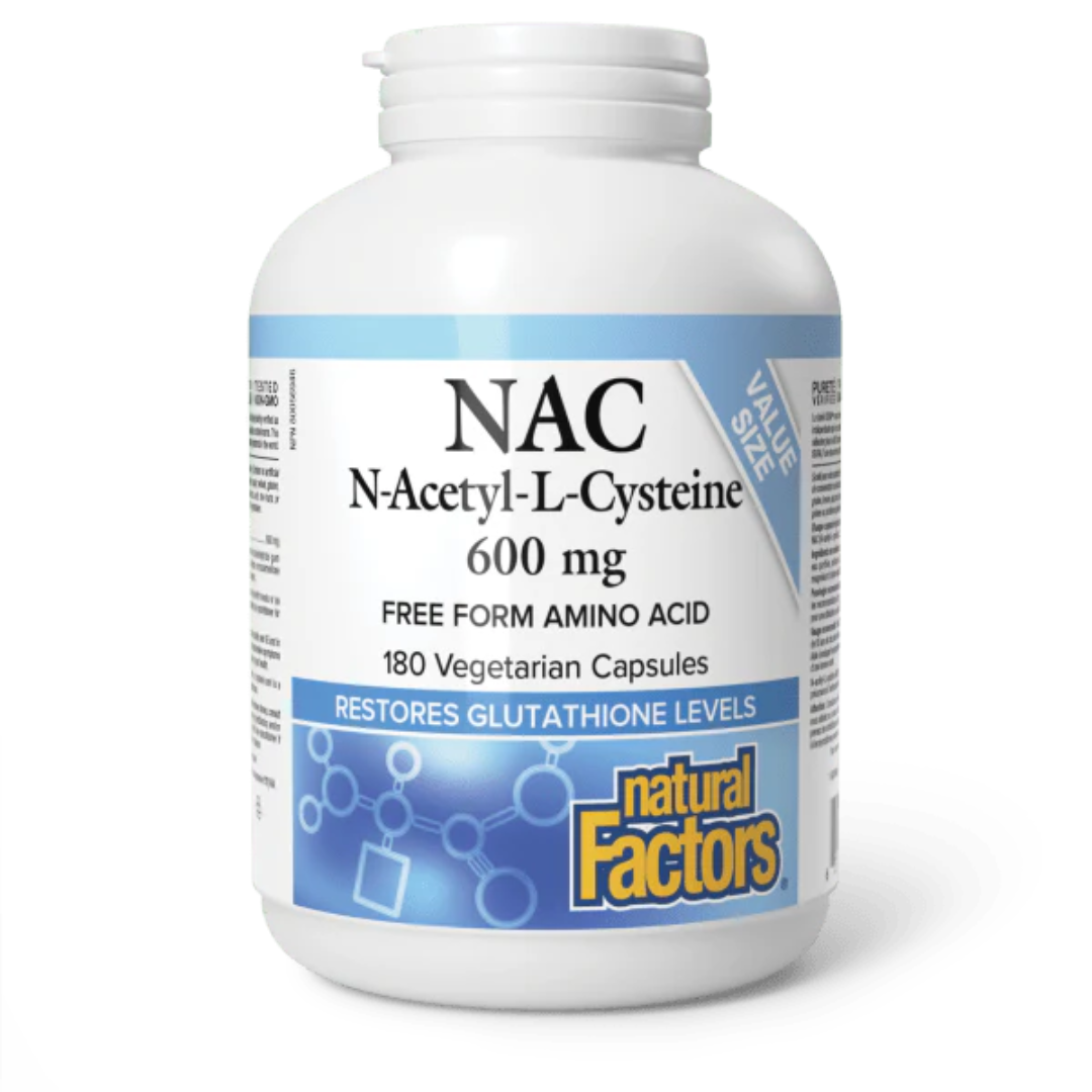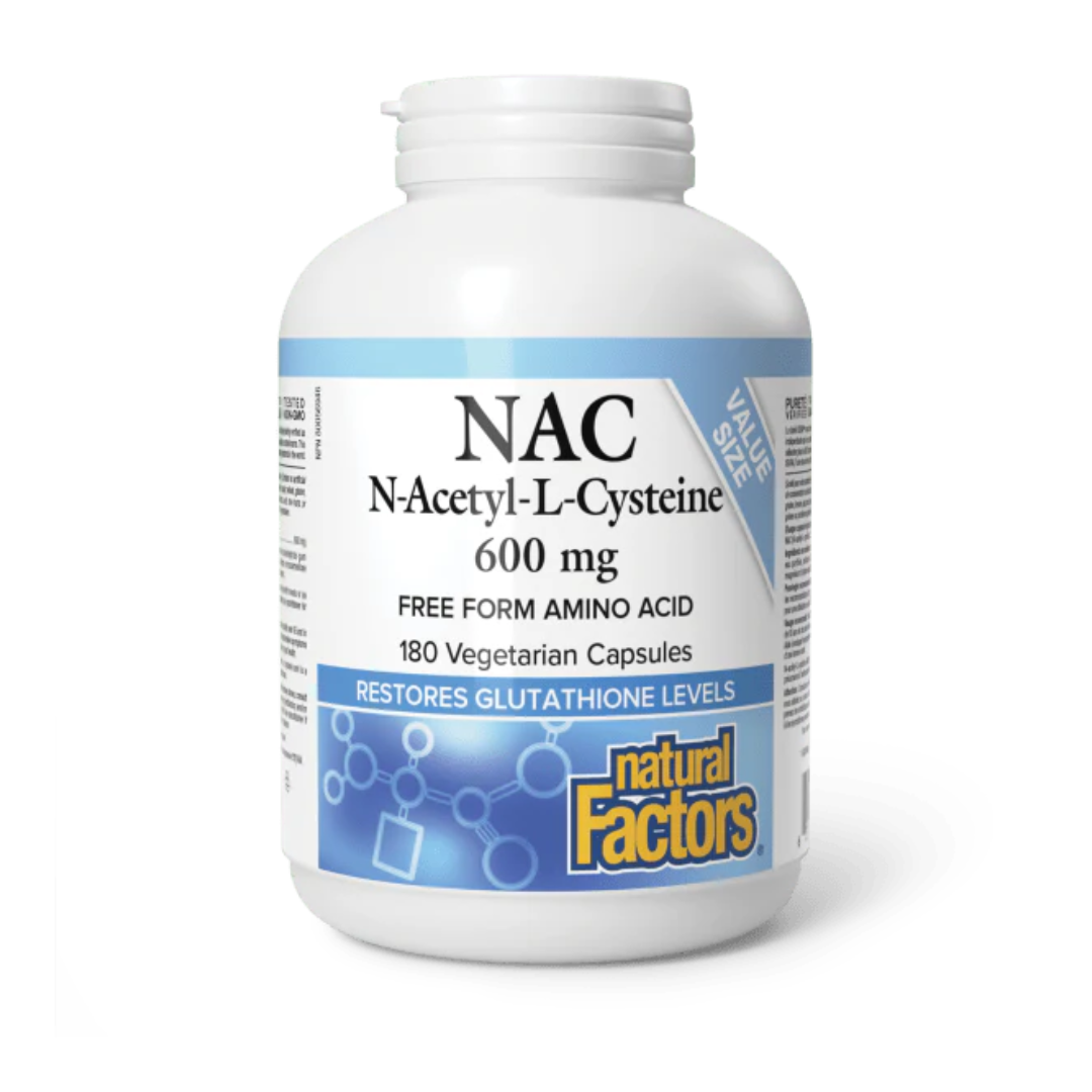 Natural Factors N-Acetyl-L-Cysteine (NAC) is a free form amino acid and a vital part of the body’s antioxidant defence system. It is needed for the production of glutathione, a key antioxidant involved in many physiological processes, such as fighting oxidative stress, maintaining a healthy immune system, repairing tissues, cellular detoxification, and supporting overall health. NAC supplementation has been clinically shown to increase the body’s antioxidant capacity and help reduce the severity and frequency of influenza-like symptoms in adults over 65. NAC is also the most stable and readily absorbed form of cysteine.