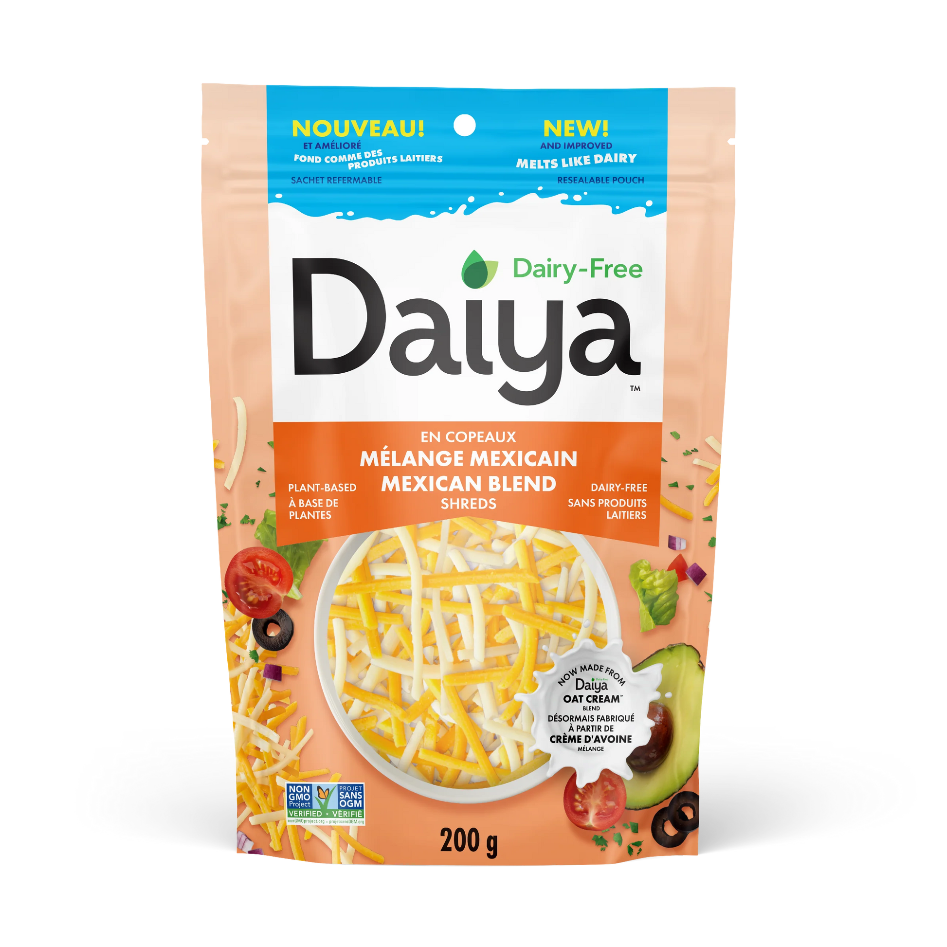 When four flavourful dairy-free shreds come together, the results are fuego! These iconic dairy-free shreds are more like dairy than ever before - a velvety melt, smooth texture and full of flavour, with none of the compromise. It's awesomely savoury, creamy and mild all at once - perfect for burritos and nachos.