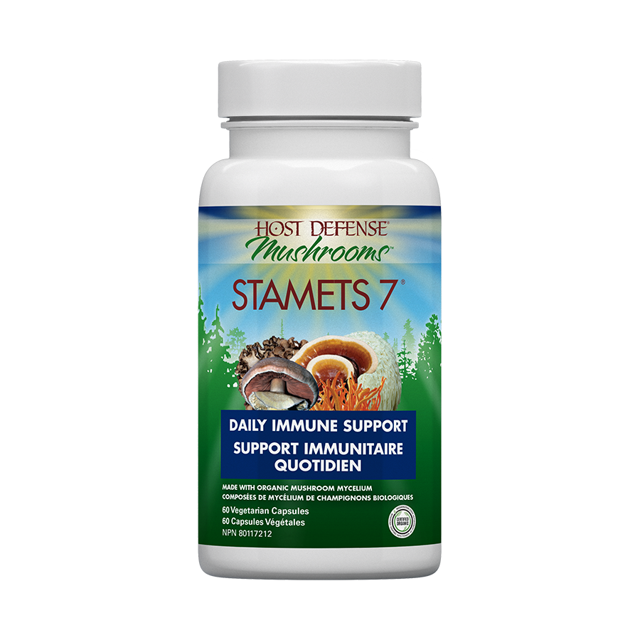 Host Defense Stamets 7® was designed by Paul Stamets to support general immunity. It includes activated, optimally dried, certified organic mushroom mycelium, with a full spectrum of constituents, including polysaccharides and an array of extracellular constituents, such as prebiotics for the microbiome, essential for supporting natural immunity. Many use Stamets 7® as a general tonic for maintaining peak performance and health.