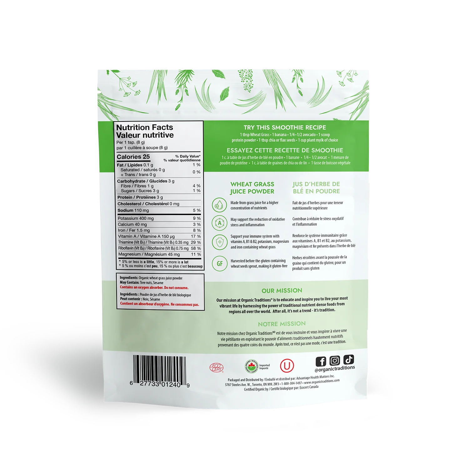 Ingredients: organic wheat grass juice powder