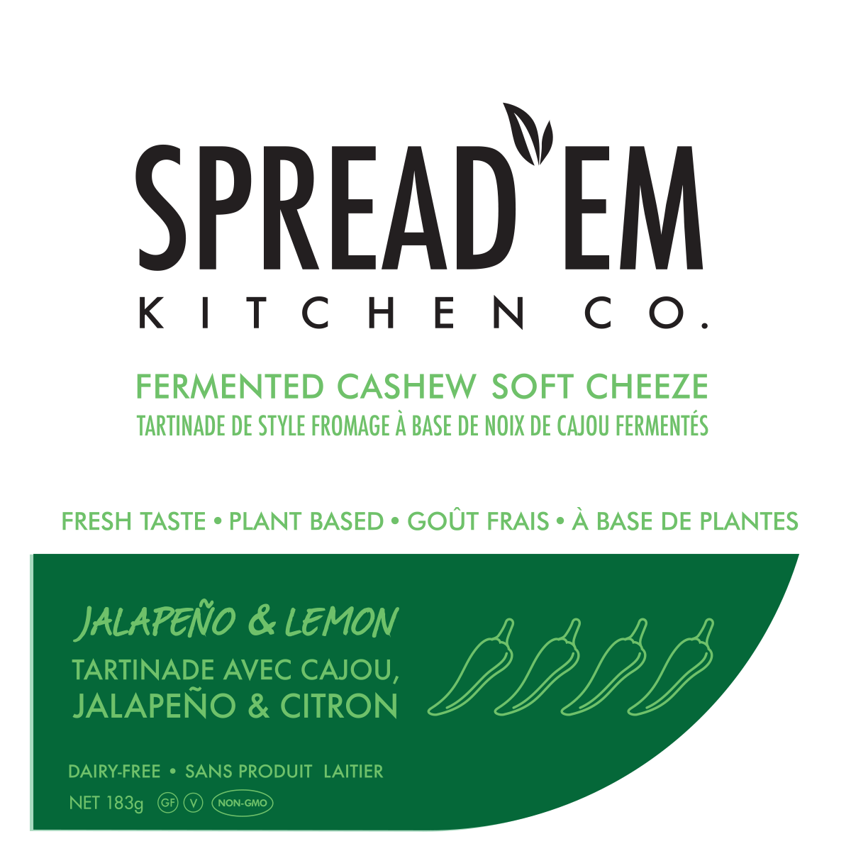 Ingredients: Cashews (tree-nuts), purified water, jalapeño, onion, garlic, nutritional yeast, vinegar, lemon juice, sea salt, bacterial culture,may contain citric acid.