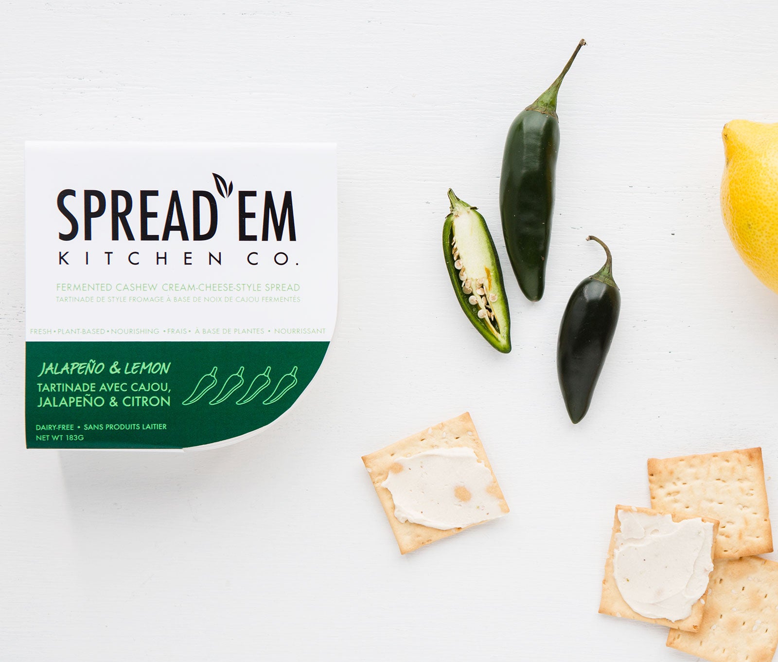 Taking dairy-free cheeze to the next level! These flavour bombs are traditionally cultured, which full of cheezy zip, and rich in probiotics to keep your digestive system happy and healthy. No added oils, thickeners or emulsifiers. Just nuts, veggies, herbs and spices. All ingredients you can pronounce! This dip combines the flavours of fresh jalapeño and lemon. Lots of cheezy depth! You can really taste the freshness.